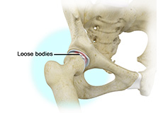 Loose bodies are small loose fragments of cartilage or a bone that float around the joint. The loose bodies can cause pain, swelling, locking and catching of the joint.